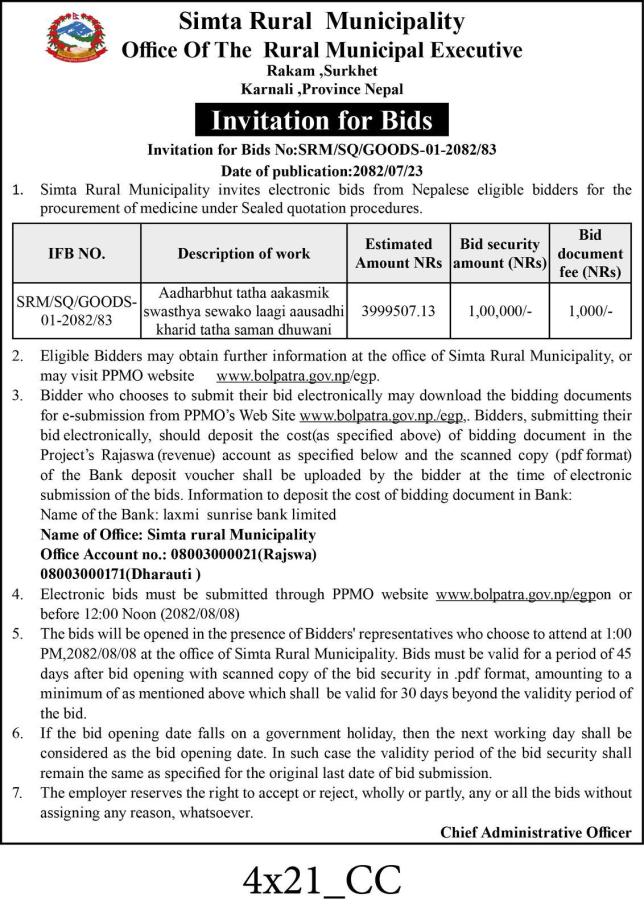 » औषधि खरिदको बोलपत्र सुचना।
