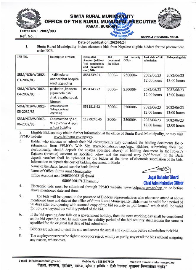 सार्वजनिक खरिद/बोलपत्र सूचना