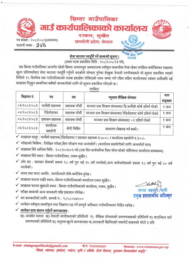 सेवा करारमा पदपूर्ति गर्ने सम्बन्धी सूचना