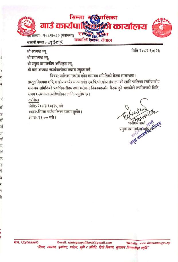 पालिका स्तरीय खोप समन्वय समितिको बैठक सम्बन्धमा ।