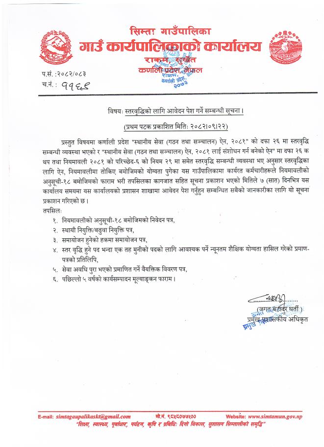 » स्तर वृद्धिको लागि आबेदन दिने सम्वन्धमा ।